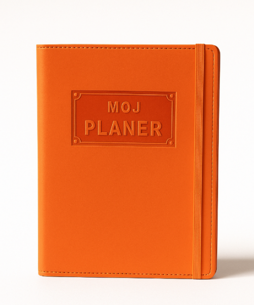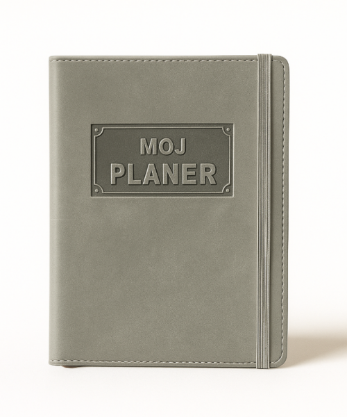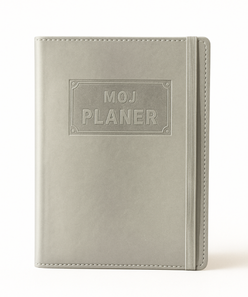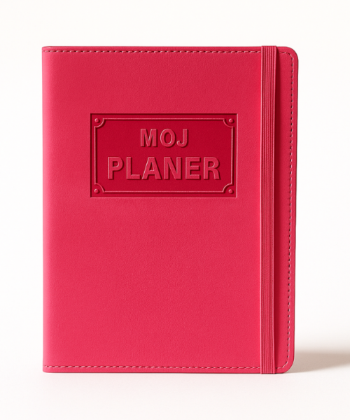 Moj planer je naš prvi, najpoznatiji i najtraženiji proizvod. Svake godine radimo drugačiju unutrašnjost, mijenjamo boje korica, dodajemo rubrike koje ste tražili, tako da je uvijek drugačiji, veseliji i moderniji. Njegovoj vedroj i praktičnoj unutrašnjosti podarilii smo još ljepši vanjski izgled. Korice smo obrubili koncem za dodatnu dozu profinjenosti te smo dodali fiksnu gumenu traku koja ga dodatno čuva. Unutrašnjost uz rubrike za upisivanje sadrži i tjedni planer s datumima, danima i satima te notes za malo više zapisivanja. Idealnih je dimenzija, lagan i savršen za nošenje u torbici, pa ga uvijek možete imati sa sobom. Jedino što nedostaje su Vaše uvijek divne i maštovite personalizacije!